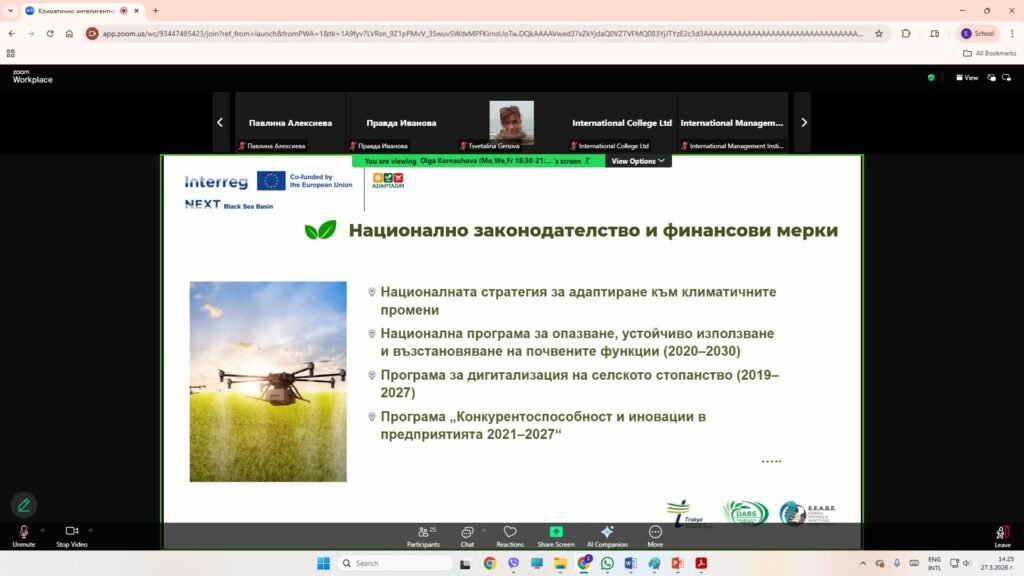 On March 27, 2026, the Dobrudzha Agrarian and Business School (DABS) hosted a webinar titled “Funding Opportunities for Climate-Smart Agriculture in Bulgaria” as part of the ADAPTAGRI project. The event brought together representatives from academia, farmers, entrepreneurs, and experts to discuss key challenges and opportunities facing the agricultural sector in the context of climate change…
