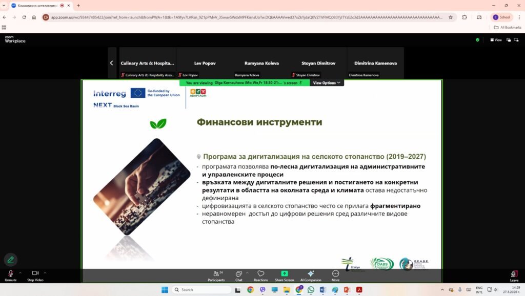 Уебинар за възможностите за финансиране на климатично интелигентно земеделие събра експерти и заинтересовани страни